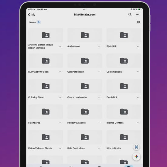 Mengandungi lembaran kerja, video, aktiviti, permainan, buku mewarna, planner, kuiz, dan banyak lagi – sesuai untuk anak usia 1–12 tahun.